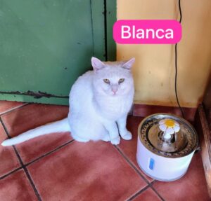Blanca, arrivata da noi con i suoi cuccioli due estati fa, era molto spaventata e difendeva i suoi piccoli.Le abbiamo dato tempo, lei ha iniziato ad uscire dalla confort zone della sua stanzetta, ha iniziato a socializzare con gli altri gatti ma soprattutto con noi, é una gatta molto dolce.